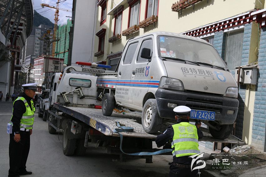 本網(wǎng)訊(記者 鄧安華 唐闖 文/圖)2日上午,記者在康定市北門體育場附近看見幾名交警正在拖移亂停亂放在街邊的一臺車輛。據(jù)悉,為保證藝術(shù)節(jié)期間康定主城區(qū)的交通順暢,康定市公安局交警大隊從當(dāng)天起以康定主城區(qū)為中心,嚴厲查處影響交通秩序的各類突出交通違法行為。