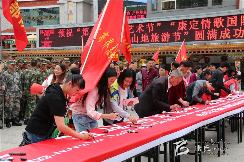 本網(wǎng)訊(記者 宋志勇 文/圖)8月5日,由州文明辦、州直工委、康定市文明辦共同舉行的康定地區(qū)迎“康巴藝術(shù)節(jié)”爭(zhēng)當(dāng)文明市民簽名暨志愿服務(wù)活動(dòng)在情歌廣場(chǎng)正式拉開(kāi)帷幕。來(lái)自康定地區(qū)社會(huì)各界的青年志愿者服務(wù)隊(duì)、巾幗志愿者服務(wù)隊(duì)、工商界志愿者服務(wù)隊(duì)、衛(wèi)生系統(tǒng)志愿者、駐康部隊(duì)志愿者服務(wù)隊(duì)、州級(jí)機(jī)關(guān)志愿者服務(wù)隊(duì)、市直機(jī)關(guān)志愿者服務(wù)隊(duì)、環(huán)衛(wèi)志愿者服務(wù)隊(duì)等共計(jì)1000余人參與。
