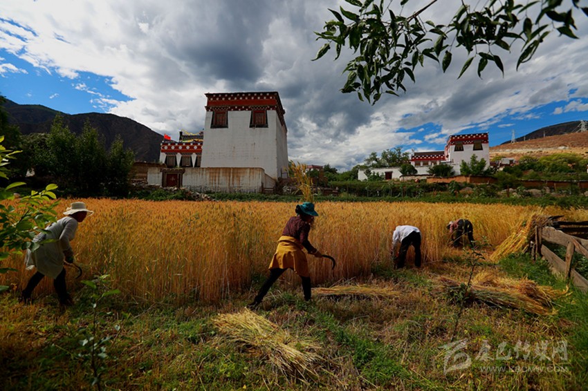 在青德鎮(zhèn)的田地里,隨處可見(jiàn)百姓忙碌收割的身影。熱龔村村民洛絨擁中雖然已忙得滿頭大汗,但是喜悅之情卻溢于言表,她說(shuō),由于今年風(fēng)調(diào)雨順,家里種植的青稞和小麥?zhǔn)粘杀韧暌?,趁這幾天天氣晴好抓緊搶收。筆者在地里看到,有不少收割完的農(nóng)戶正在幫助缺少勞動(dòng)力的家庭,大家相互協(xié)作確保顆粒歸倉(cāng)。據(jù)了解, 今年鄉(xiāng)城縣小麥和青稞種植面積達(dá)3萬(wàn)余畝,長(zhǎng)勢(shì)普遍較好。