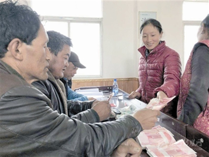 村民丁真志瑪領(lǐng)錢。
