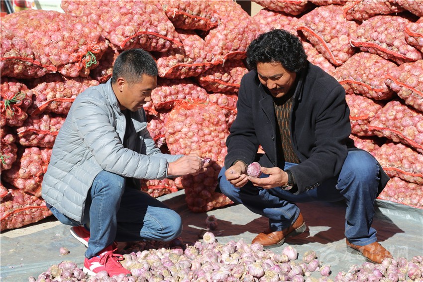 為保障村民的積極性和利益,八埡村積極協(xié)調(diào)村民們成立專業(yè)合作社,并與外地商戶簽訂收購(gòu)協(xié)議,合作社負(fù)責(zé)從農(nóng)戶收購(gòu)大蒜運(yùn)往協(xié)議收購(gòu)商家。種植戶擁珍志瑪看著自己收獲的大蒜說(shuō):“今年我家種了2畝多,合作社直接到地頭收購(gòu),這讓我們省了不少心”。