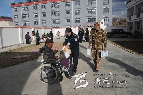 時間一久,走動一多,不少民警和老人們都熟悉了,這些不是親人勝似親人的人民警察,不但成為了老人眼中的新朋友和新親人,而且也成為了老人心中最期盼到來的人。每次看到民警們的到來和“拜訪”,老人們格外開心,有的拉著民警的手久久不肯松開,有的跟民警相談甚歡,有的哽咽著說不出話來,就像見到久別的親人一樣開心。時至今日,很多民警都忘不了2012年6月在開展慰問活動中所發(fā)生的溫情一幕:面對民警的真心付出,一位聾啞老人握著女民警益西拉姆的手高興得手舞足蹈,讓大家都深受觸動。雖然她聽不到民警在說啥,但她看到民警在做啥,她感受到了民警們真誠的關愛,通過與民警的握手來表達無聲的感謝。