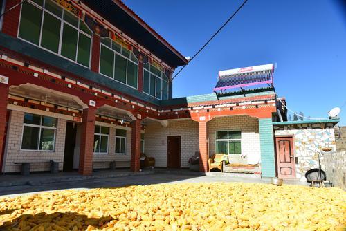 初夏的清晨,有隔夜晶瑩的露珠在花瓣上閃閃發(fā)光,迎接著朝陽?!皝韥韥?,酥油茶都倒好了,大家先到樓上喝茶,今天中午美酒佳肴管吃管飽哦!”36歲牧民來讓登真熱情的招呼著客人們?!袄耄炔豢椓?,趕緊,去把那兩箱好酒找出來!”“對(duì)了,快打電話,把你哥也喊過來陪下客人些(客人們)!”……這“管吃管飽”的“好酒”和熱情的服務(wù)接待,正悄無聲息的向大家展示著改革開放40年來農(nóng)牧區(qū)的巨大變化。