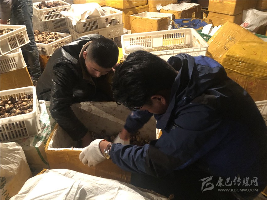 稻城全縣各鄉(xiāng)鎮(zhèn)老百姓白天新采摘的松茸當天就運到這里,分類后將通過航空運輸發(fā)往全國各地。
