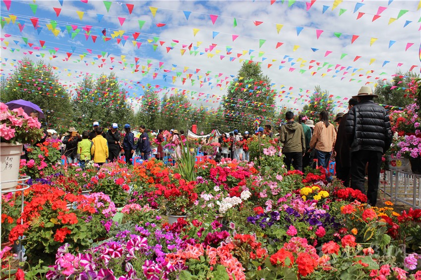 當(dāng)天,身著色彩艷麗藏族服飾的表演者徜徉在花海中,與群眾游客聚集在一起,賞美景、品華服,傳承藏族禮儀文化、傳播藏民族服飾文化,沉浸在喜慶氛圍中。