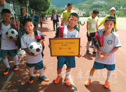 山里娃娃吃得苦、受得累、體能好、跑得快。通過集訓(xùn)體能、技藝和賽場對抗能力,球員在短時間里球技突飛猛進(jìn),接連取得優(yōu)異戰(zhàn)績:去年6月,參加“2018年瀘定縣中小學(xué)生足球選拔賽”獲得了低段組第一名;去年7月,參加“甘孜州第三屆青少年校園足球聯(lián)賽”獲得了甘孜州東路片區(qū)足球賽低段組第一名。