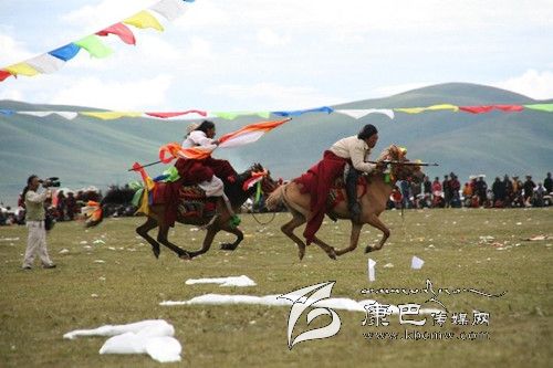 賽馬是廣大藏族群眾十分喜愛的一項體育運(yùn)動。隨著時代的發(fā)展,賽馬節(jié)的內(nèi)涵不斷拓展,已形成一種內(nèi)容豐富多彩的傳統(tǒng)文化。它不僅是農(nóng)牧民群眾縱情歌舞的聚會,交流農(nóng)畜產(chǎn)品的市場,而且是藏族群眾展示精神風(fēng)貌的舞臺。在所有民間傳承的藏族節(jié)日中,幾乎都少不了賽馬活動,并且此項活動有著悠久的歷史。圖為石渠牧民正在開展賽馬活動。 (李宏 攝影報道)
