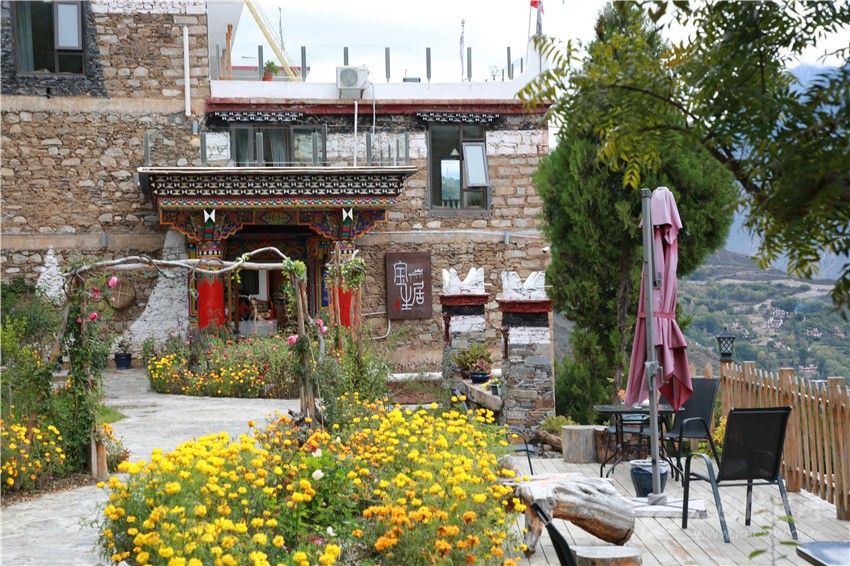 劉國芳告訴記者,花筑田園酒店的誕生,源于她的兒子和廣東東莞幾名游客的一段佳話,兒子安俊杰在跑成都到亞丁包車業(yè)務(wù)的時(shí)候,認(rèn)識了包車到亞丁的東莞游客趙雯、常妹、千麗、雙燕和成都的峰哥,一路上,開朗的安俊杰博得了客人的信任和好感。安俊杰邀請她們到甲居藏寨作客。幾位客人到甲居考察后,立即表示愿意投資在聶呷鄉(xiāng)開辦鄉(xiāng)村酒店。劉國芳請示縣鄉(xiāng)領(lǐng)導(dǎo)同意,決定將自己的自留地拿出來合資開辦酒店。5位客人立即出資10萬元用于整修道路,隨后出資100萬元,于2016年按照鄉(xiāng)村酒店的標(biāo)準(zhǔn)開始修建花筑田園酒店。酒店共有18個(gè)房間,建筑突出了丹巴嘉絨風(fēng)格,以玫瑰、菊花、薰衣草等花卉為主,集觀賞、休閑、康養(yǎng)為一體,增強(qiáng)了游客的體驗(yàn)度和舒適感。2018年5月酒店開門迎客,到今年10月已盈利50多萬元。