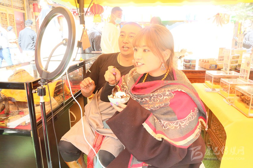 “大家請(qǐng)看我手中的酸奶,純天然,無添加,綠色產(chǎn)品,值得擁有,價(jià)格不高,15元一桶,快遞到家……”納塔鄉(xiāng)展銷點(diǎn)內(nèi)正在做帶貨直播。直播間里,擔(dān)任“帶貨官”角色的工作人員其麥拉姆毫不怯場(chǎng),說村情、講故事、推產(chǎn)品,為網(wǎng)友介紹了納塔的系列高原特色優(yōu)質(zhì)產(chǎn)品。云端上遇見的特殊主播,讓直播間瞬間畫風(fēng)突變、互動(dòng)頻頻。留言區(qū)也如流水線一般,源源不斷地流動(dòng)著網(wǎng)友的互動(dòng)。