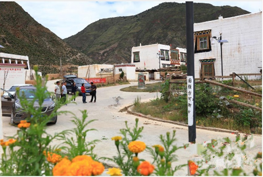 在洞松鄉(xiāng)卡心壩子,只見硬化道路寬敞整潔,29座白色藏房在藍(lán)天白云的映襯下顯得格外耀眼,庭院花果飄香,平坦的村道旁垂柳、雪松、桂花等樹種成片成蔭,一片祥和。