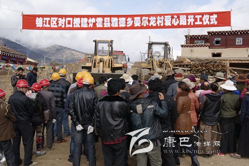 錦江區(qū)對口援建爐霍縣雅德鄉(xiāng)晏爾龍村愛心路開工儀式現場。