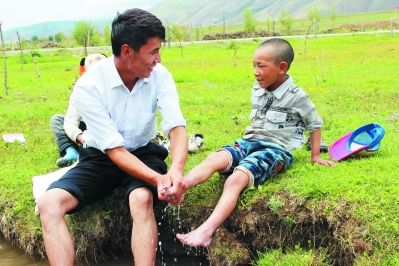 近日,筆者在仁果下鄉(xiāng)采訪時,看到一個年輕人正在給孩子洗腳。“這個孩子是你的親戚嗎?”“不是哦,他們都是我的學生,因為孩子太小了,就幫他們洗腳,希望孩子從小養(yǎng)成講衛(wèi)生的好習慣。”看著筆者不解的目光,他解釋說。