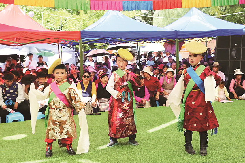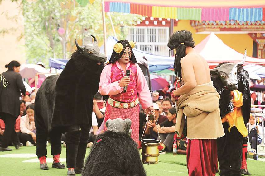 巴塘藏戲團(tuán)帶來(lái)了藏戲《智美更登》中“牧人”的唱腔片段,劇情中贊頌家鄉(xiāng)水草豐美,牛羊滿(mǎn)倉(cāng)的美好景象與九月豐收的巴塘美景相應(yīng)相合。
