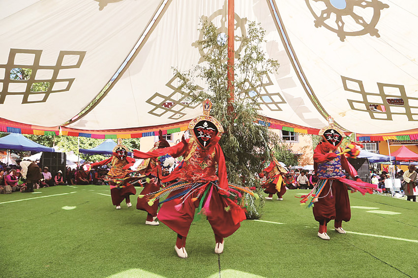 “能夠有這么好的機(jī)會(huì)跟拉薩藏戲團(tuán)和巴塘藏戲團(tuán)一起互相交流、互相學(xué)習(xí)我感到非常榮幸。藏戲藝術(shù)是藏民族文化中一朵璀璨的明珠,也是中華民族戲曲藝術(shù)寶庫(kù)中的瑰寶。希望通過(guò)這次‘央勒節(jié)’非遺文化交流演出,回望經(jīng)典、歌頌時(shí)代、對(duì)話(huà)交流,推動(dòng)藏戲藝術(shù)的傳承、保護(hù)和發(fā)展?!崩硖敛貞驁F(tuán)負(fù)責(zé)人洛絨登巴感慨不已。