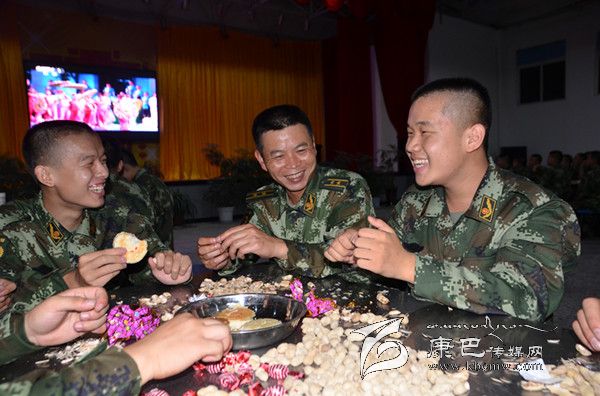 警營俱樂部?jī)?nèi)文藝節(jié)目激情上演,觀眾是清一色的“橄欖綠”,觀眾們掌聲沸騰,臺(tái)球、棋牌愛好者對(duì)戰(zhàn)廝殺,酣暢淋漓。室外的比賽正激烈進(jìn)行,新兵們沉浸在歡樂的海洋里。為讓初上高原的新戰(zhàn)士們?cè)诰癄I過一個(gè)愉快溫暖的中秋節(jié),教導(dǎo)隊(duì)領(lǐng)導(dǎo)可謂煞費(fèi)苦心,他們買來月餅、水果等精心安排節(jié)日餐桌,并傾心打造節(jié)日“文化大餐”,讓第一次離家的新兵們感受到部隊(duì)大家庭的溫暖。