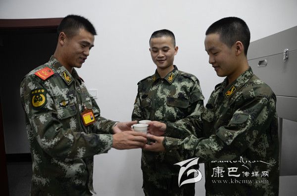 為新兵送上暖心的熱茶。