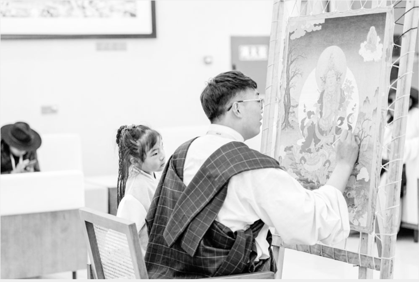 “絲路甘孜·龍燈牧場(chǎng)”景區(qū)里體驗(yàn)畫唐卡。