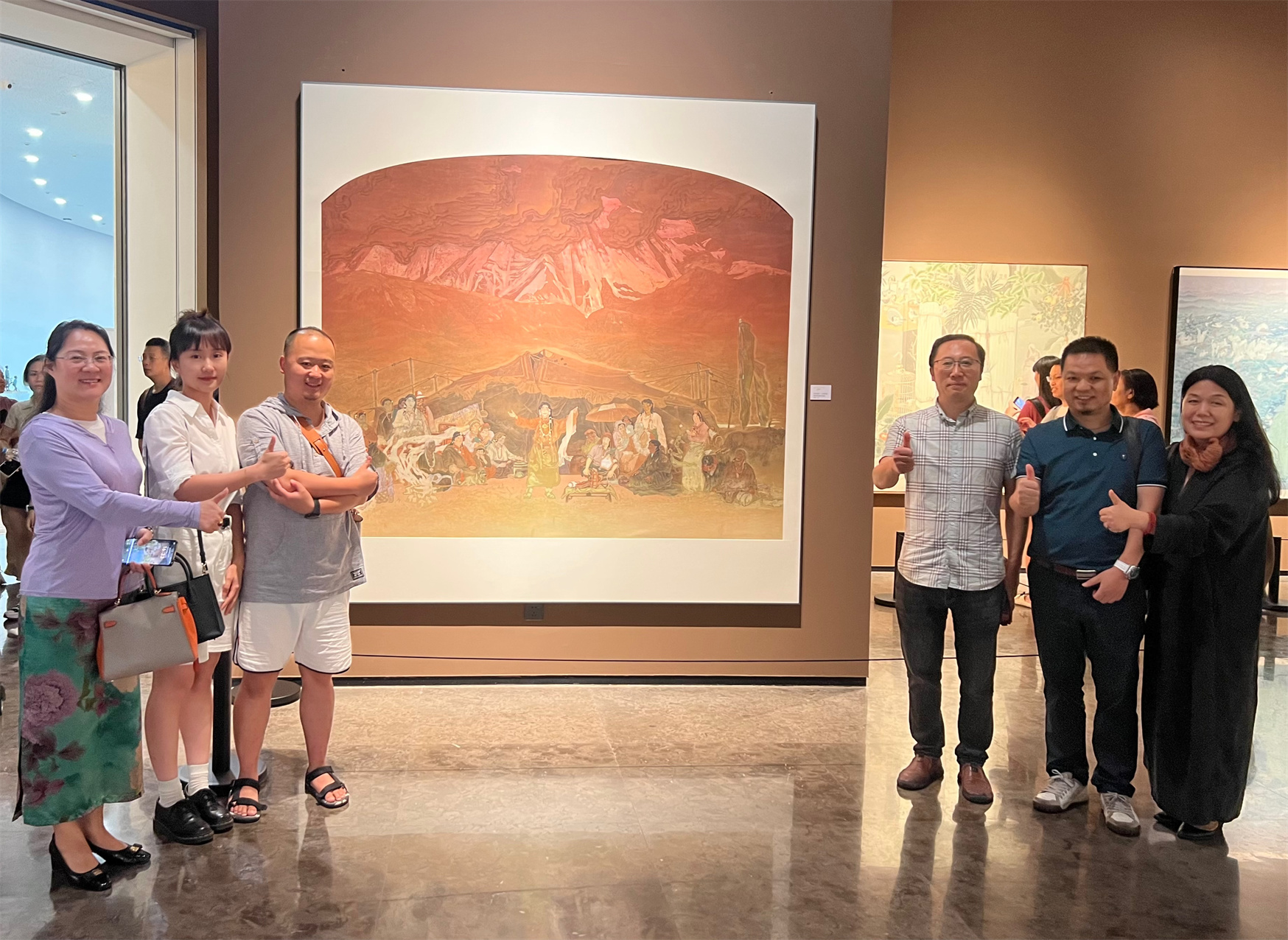 四川美術(shù)館原館長羅雪村曾表示,這幅作品從“平凡中見偉大”,形象地展示了人民的磅礴偉力,以詩意想象和融合漢藏的獨(dú)特畫風(fēng),熱情頌揚(yáng)了中華傳統(tǒng)文化的傳承與創(chuàng)新,算得上是“思想精深、藝術(shù)精湛、制作精良”的佳作,對于鑄牢中華民族共同體意識增強(qiáng)中華民族凝聚力、堅(jiān)定中華文化自信,具有重要意義。