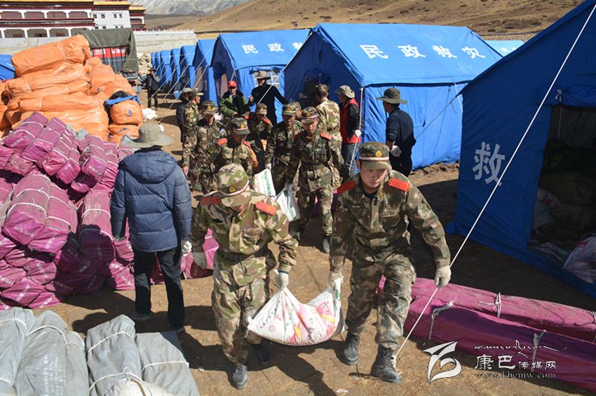 州森警支隊(duì)參謀長(zhǎng)帶前指和康定中隊(duì)60人到達(dá)震中塔公鎮(zhèn)奪讓村和木雅祖慶學(xué)校。官兵看到校舍慘景和師生驚慌失措表情,忘記了奔波疲勞和自身安危,有序疏散30名師生、搶救學(xué)校2臺(tái)受損車輛,冒著零下近10度的低溫,連夜為師生搭建帳篷17頂、簡(jiǎn)易廁所10個(gè),參戰(zhàn)官兵一夜未睡奮戰(zhàn)至黎明。23日8時(shí)10分,參戰(zhàn)的森警官兵又奉命轉(zhuǎn)戰(zhàn)至瓦澤鄉(xiāng)魚子西1、2、3村,為藏牧民轉(zhuǎn)移牦牛等牲畜200余頭,從危房中搬運(yùn)大米、青稞等糧食11.8噸,沙發(fā)、銅火爐、電視機(jī)等1680余件(套)。24日上午官兵又深入到瓦澤鄉(xiāng)麥巴村,為受災(zāi)群眾拆除危房2間、搬運(yùn)危房?jī)?nèi)貴重物品10余噸,下午,抗震救災(zāi)指揮部又緊急調(diào)參戰(zhàn)森警官兵為沙德鄉(xiāng)運(yùn)送棉帳篷等救災(zāi)物資,支隊(duì)前指帶50人動(dòng)用6臺(tái)車輛機(jī)動(dòng)110公里到達(dá)沙德鄉(xiāng)政府,又連夜劃分四個(gè)行動(dòng)小組為沙德鄉(xiāng)7個(gè)偏遠(yuǎn)村(組)將帳篷運(yùn)送到位,官兵一夜未睡將10余頂棉帳篷依次搭建到位。25日上午,官兵又接到塔公鎮(zhèn)扎西寺僧尼告急,60名官兵顧不上吃飯,緊急出動(dòng)運(yùn)輸15頂棉帳篷,奮戰(zhàn)扎西寺5個(gè)安置點(diǎn),至晚19時(shí)才搭建完畢,官兵就座運(yùn)兵車?yán)锎蝽镄菡?6日上午,武警總部工作組看望慰問參戰(zhàn)一線官兵,官兵精神振作,按抗震救災(zāi)指揮部指示,60名官兵在聯(lián)指物資發(fā)放中心,搬運(yùn)裝卸棉帳篷、棉大衣、棉被等越冬衣物和礦泉水、大米、面粉、蔬菜等生活物資68噸。目前,60名官兵仍?shī)^戰(zhàn)一線,雅江大隊(duì)、道孚大隊(duì)部分官兵在各自轄區(qū)展開震后自救互救行動(dòng)。