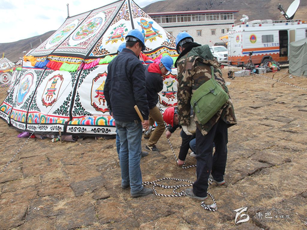 八美鎮(zhèn)中古村5組村民次勒扎西,他家的房子才修起四年,此次地震將房屋完全震倒。張喜康了解到情況后,在深夜11點,頂著寒風(fēng),冒著風(fēng)雪,一拐一拐的趕了10里地,利用手電筒照明,為次勒扎西家搭建好了帳篷,并安裝了臨時用電。