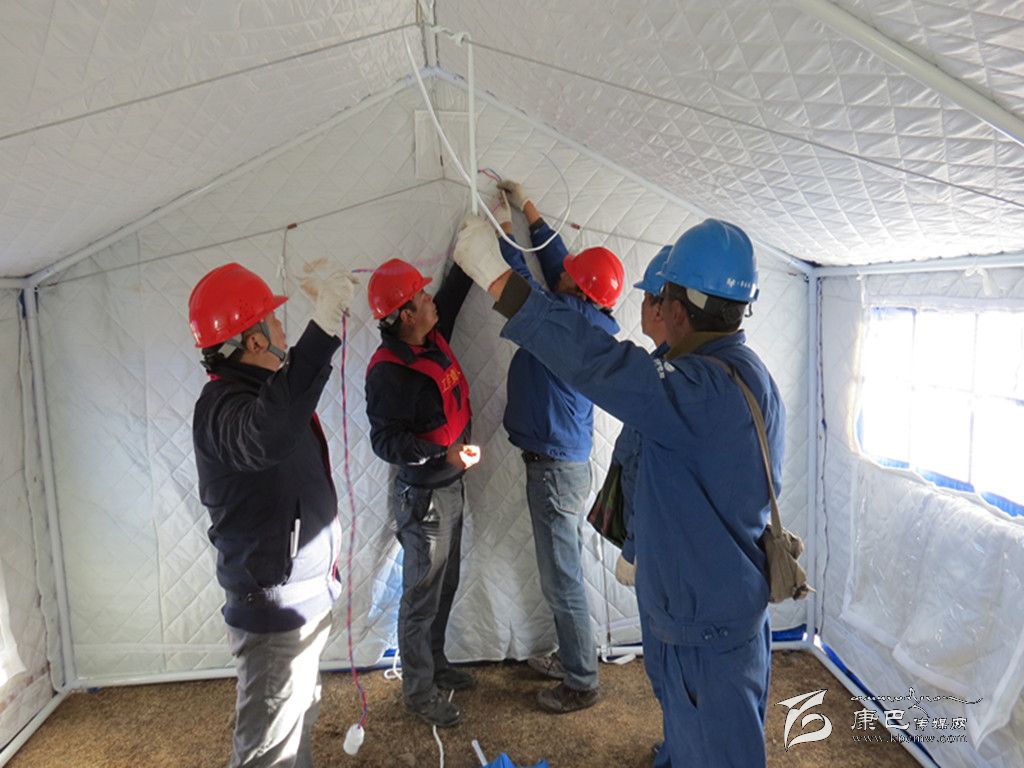奪拉二村有4個變壓器臺區(qū),其中2個臺區(qū)為人員較多的木雅祖慶學(xué)校,地震使學(xué)校住宿樓變?yōu)槲7浚=?000名學(xué)生轉(zhuǎn)移至學(xué)??盏厣系陌仓命c。為了讓安置點內(nèi)的受災(zāi)師生和應(yīng)急指揮中心盡快用上電,黨員突擊搶險小分隊不僅要在安置點迅速安裝應(yīng)急照明設(shè)施,同時還要從圍墻和學(xué)校食堂的樓頂上重新布放近3段2公里長的臨時電源線。學(xué)校圍墻因地震而搖搖欲墜,稍微用點力,墻、磚塊或水泥就會掉下來,面臨這一難題,公司黨總支沉著應(yīng)對,迅速組織塔公供電所與新都橋供電所的黨員干部趕往震中,同時安排其余供電所的黨員干部迅速增援。先期到達的救援人員在余震不斷發(fā)生的情況下,對受損供電設(shè)備及線路進行了緊急處理;在后期人員趕到后,公司黨總支迅速研究制定工作方案,科學(xué)分工:第一組黨員突擊搶險隊負責(zé)隱患排查,第二組黨員突擊搶險隊負責(zé)電線布放,第三組黨員突擊搶險隊負責(zé)救災(zāi)帳篷的照明安裝。在三個小組隊員的共同努力下,用近三個小時的時間就解決了應(yīng)急指揮中心、醫(yī)療隊和臨時安置點的照明安裝這一難題。