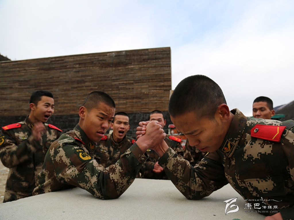 隆冬的康巴高原,早已銀裝素裹,寒氣逼人,但寒風(fēng)簌簌也擋不住訓(xùn)練場上火熱的激情,兄弟倆在眾人的歡呼聲中正在進(jìn)行100米短跑比賽。兄弟倆互不相讓,你追我趕,誰也不服輸,誰也不讓著誰,幾乎同時(shí)抵達(dá)終點(diǎn)。沒有分個(gè)高低,兄弟倆又在器械上較了勁,你做一個(gè)我就要做兩個(gè),你做兩個(gè)我就要做三個(gè)……班上的戰(zhàn)友也被兄弟倆感染著,在訓(xùn)練場上也互相較起了勁,掀起了“對(duì)抗風(fēng)暴”。