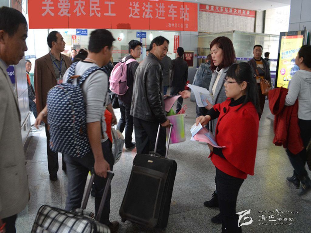 本網(wǎng)訊(宋華玉 記者 秦松 文/圖)“這個(gè)資料太實(shí)用了,讓我們可以了解自己的權(quán)益有哪些、勞動合同書是怎樣的。”當(dāng)在康定汽車站內(nèi)的農(nóng)民工拿到由州總工會發(fā)放的法冶宣傳資料時(shí),他們?nèi)缫曊鋵毎愕卣J(rèn)真閱讀著宣傳資料,或小心翼翼地把資料裝進(jìn)行李中。4月5日至4月13日,州總工會在康定汽車站開展了“關(guān)愛農(nóng)民工、送法進(jìn)車站”法治宣傳活動,正式啟動了“學(xué)雷鋒、慶五一”服務(wù)職工(農(nóng)民工)系列活動,拉開了州總工會2015年法制宣傳活動的序幕。
