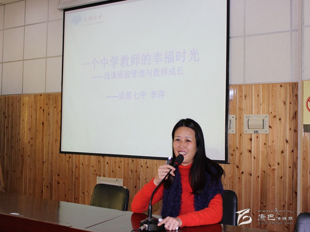 活動中,成都七中網(wǎng)校教師分別與康定中學網(wǎng)課班(云班)教師、學生開展了交流、觀摩教學等活動。成都七中優(yōu)秀政治教師、班主任李萍還為全校教師作了一堂題為《一個中學教師的幸福時光──淺談班級管理與教師成長》的專題講座。講座中,李萍老師以米歇爾訪問七中以及旅美感受為楔子,結(jié)合自己的教育經(jīng)驗、親身經(jīng)歷、人生閱歷、工作所得,對班級管理及教師成長進行了深入淺出的詮釋,讓全體聽課教師普遍感覺受益非淺。