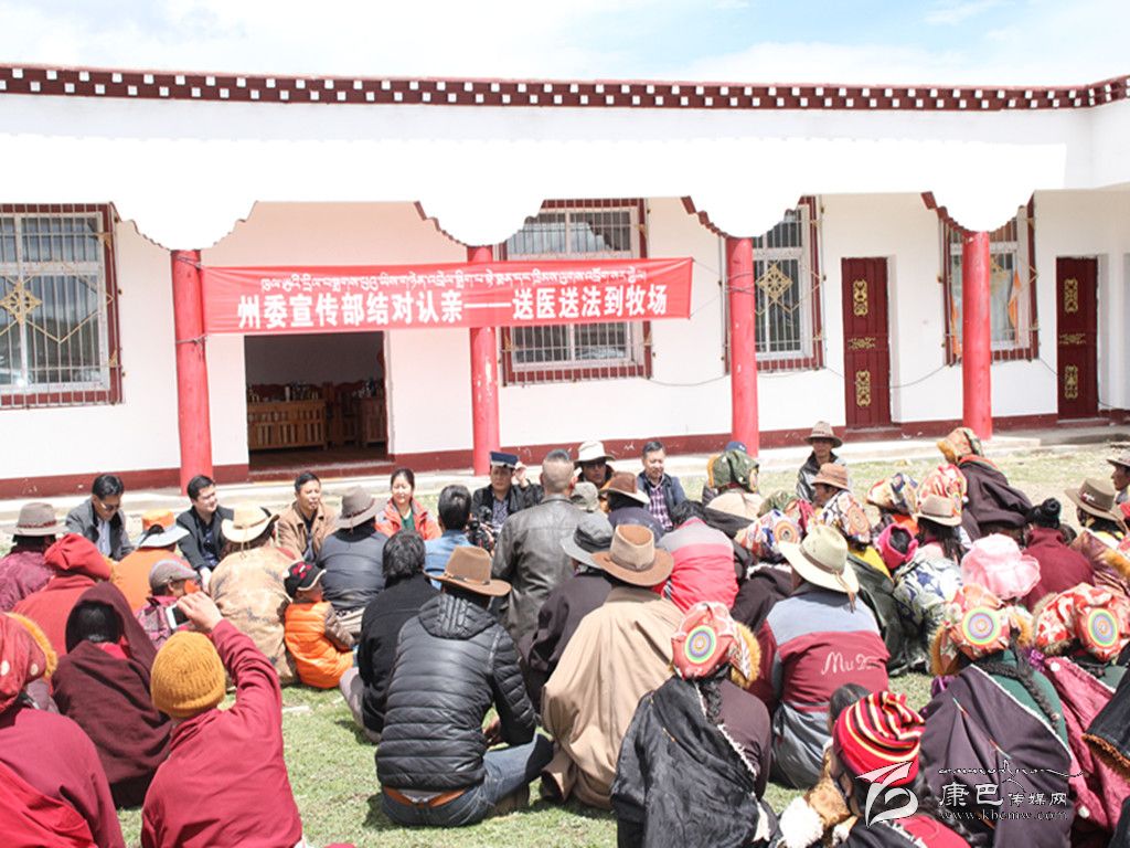 起塢鄉(xiāng)格托二村的牧民群眾都還在蟲草采集點(diǎn),但得知州委宣傳部的親戚們要到村上來送醫(yī)送藥、送法律,牧民群眾們奔走相告,大家相繼趕到村級活動室外,熱情地與工作組握手問好,圍坐在草地上聽工作組為大家宣講法律法規(guī)、惠民政策等相關(guān)知識。
