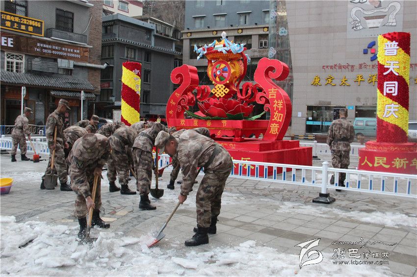 情歌廣場,官兵們鏟除冰雪,除去塵土垃圾,留下一片潔凈美好;福利院里,官兵們?yōu)槔先藵{洗衣物、打掃衛(wèi)生、理發(fā)洗頭,忙得不亦樂乎。幾位女兵還專門為老人們送去了自編自演的節(jié)目,這個“一家人”的溫馨聚會,讓老人們倍感高興、倍感溫暖。而此刻,遠(yuǎn)在道孚的分區(qū)部隊(duì)某營官兵的愛民助民活動也進(jìn)行的如火如荼。