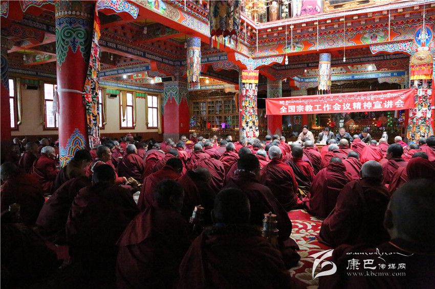“中央和省委非常重視支持藏區(qū)經(jīng)濟(jì)社會(huì)發(fā)展和長(zhǎng)治久安、非常關(guān)心關(guān)愛(ài)寺廟建設(shè)及其僧尼生活,州委更是在抓好發(fā)展、民生、穩(wěn)定‘三件大事’上下足了功夫,在惠寺惠僧上使足了干勁。‘十二五’以來(lái),州上全力爭(zhēng)取落實(shí)了中央寺廟水、電、路等基礎(chǔ)設(shè)施建設(shè)資金1億多元,省級(jí)和州安排危房維修和專(zhuān)項(xiàng)資金1500余萬(wàn)元, 2014年還專(zhuān)項(xiàng)為五明佛學(xué)院安排資金100萬(wàn)元;各縣財(cái)政投入寺廟基礎(chǔ)設(shè)施資金共1.1億元,在267座寺廟開(kāi)展了路、水、電、通訊、廣播電視‘五通’及危房建設(shè)。這些真金白銀的投入,帶來(lái)的是全州藏傳佛教寺廟基礎(chǔ)條件的大幅改善。面對(duì)寺廟和僧尼學(xué)習(xí)生活條件的日臻完善,難道我們不知道恩從何來(lái)嗎?‘十二五’以來(lái),全州累計(jì)保障困難僧尼14969人,政府資助困難僧尼參加城鎮(zhèn)醫(yī)保、新農(nóng)合39014人,納入基本醫(yī)療保險(xiǎn)38989人、養(yǎng)老保險(xiǎn)12697人,完成52459名僧尼健康信息調(diào)查,3138名宗教場(chǎng)所負(fù)責(zé)人及成員享受工作補(bǔ)貼。這些看得見(jiàn)、摸得著的實(shí)惠,帶來(lái)的是廣大僧尼后顧之憂的迅即消除。面對(duì)這些無(wú)微不至的關(guān)愛(ài),難道我們不知道恩向誰(shuí)報(bào)嗎?今年是‘十三五’的開(kāi)局之年,州委十屆八次全會(huì)確立了‘一個(gè)目標(biāo)、兩個(gè)關(guān)鍵、三件大事、六大戰(zhàn)略’總體工作格局,提出了全面建設(shè)美麗生態(tài)和諧小康甘孜的宏偉目標(biāo),我們廣大僧尼也將與全州農(nóng)牧民群眾一起精準(zhǔn)脫貧、致富奔康,住上好房子、過(guò)上好日子、養(yǎng)成好習(xí)慣、形成好風(fēng)氣。面對(duì)來(lái)之不易的幸福生活和更加美好的發(fā)展前景,難道我們不知道在感恩中奮進(jìn)、在奮進(jìn)中感恩嗎?……”以小見(jiàn)大的宣講、以事說(shuō)理的宣傳、以情感人的對(duì)話,使得宣講內(nèi)容都成了僧尼們愛(ài)聽(tīng)的大白話、通俗話和貼心話。