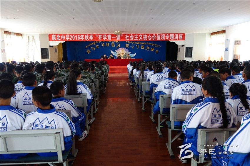9月5日上午,康北民族高級中學(xué)迎來新學(xué)期的第一課,由康定中學(xué)教師李發(fā)軍作專題講座,康北民族高級中學(xué)近700名師生聆聽講座。授課中,李發(fā)軍從社會主義核心價值觀提出的背景、社會主義核心價值觀的科學(xué)內(nèi)涵、怎樣踐行社會主義核心價值觀三個方面以深入淺出、通俗易懂的方式引導(dǎo)學(xué)生們理解社會主義核心價值觀的內(nèi)涵,弘揚(yáng)中華民族的傳統(tǒng)美德,激發(fā)報(bào)國情懷。
