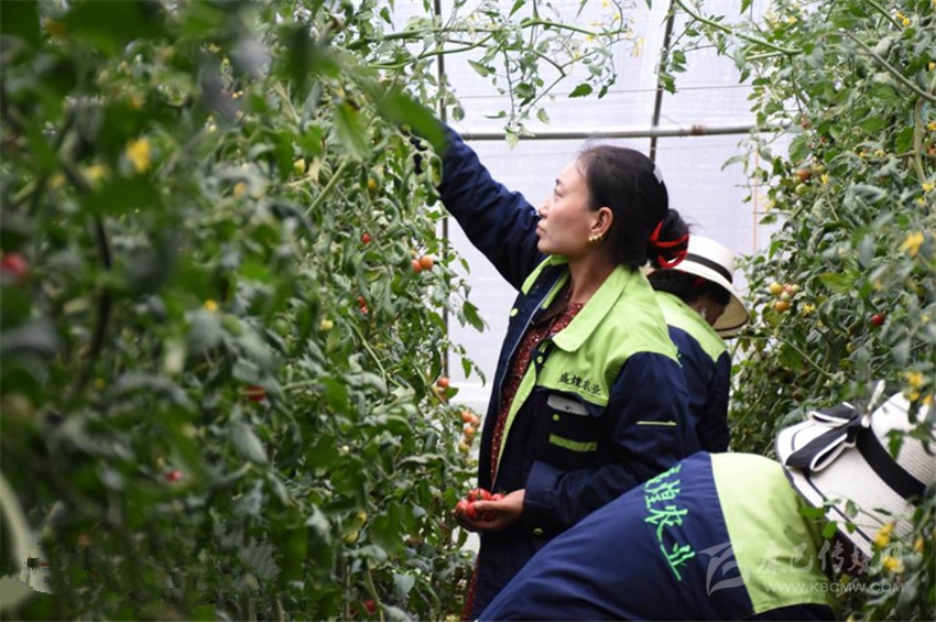 在基地打工的村民們正在采摘番茄。