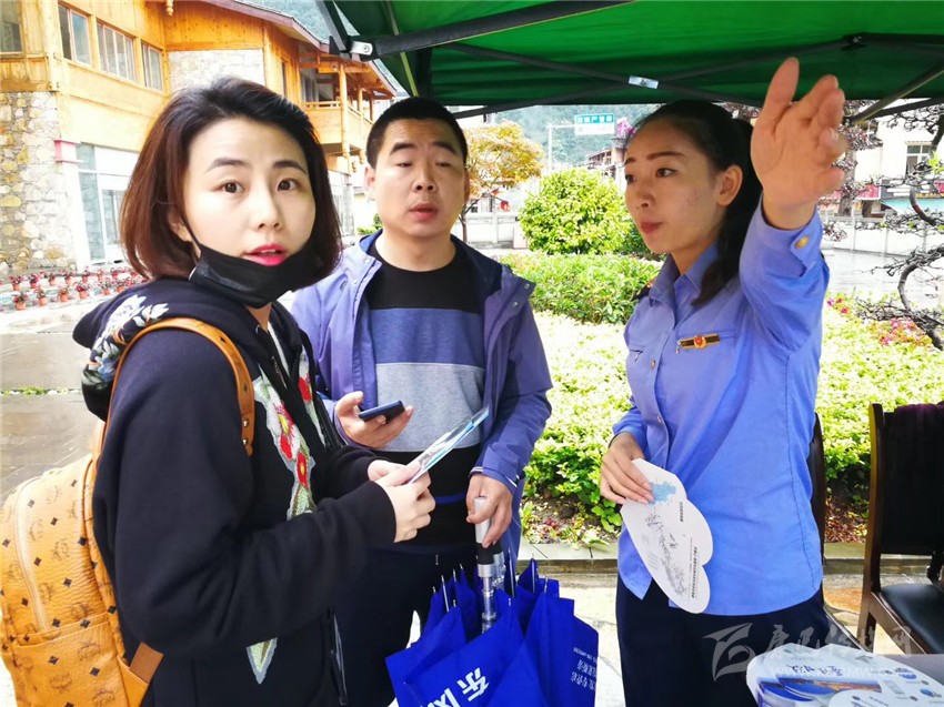 去年國(guó)慶期間,工商局工作人員向來州游客介紹我州“雙心”創(chuàng)建工作。