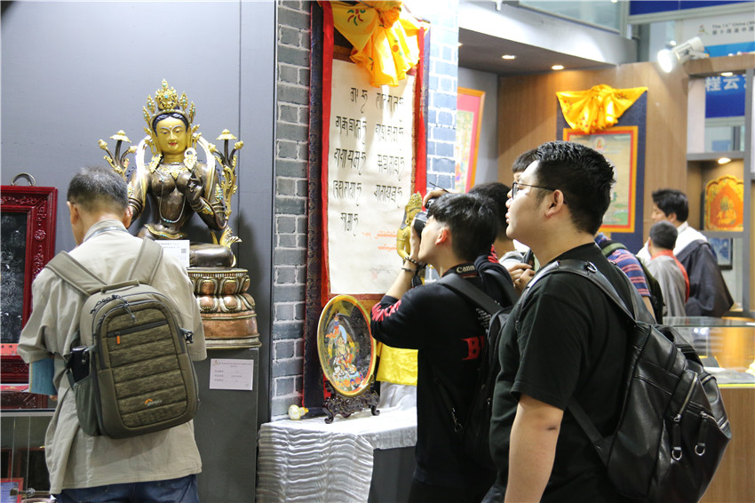 參展中,無論是白玉縣董察文化發(fā)展有限責任公司,還是德格縣多瀑溝噶瑪嘎孜文化旅游發(fā)展有限公司等展示了各自產(chǎn)品,讓深圳市民領略了我州董察文化、嘎孜文化唐卡、藏文書法等非遺精品佳作,“參展主要是傳承我州非遺文化,展示企業(yè)本身的同時,把甘孜藏區(qū)文化產(chǎn)品推向世界?!眳⒄股唐毡榈墓沧R。
