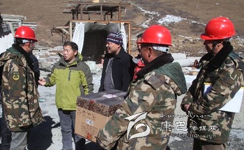 為打好今年交通攻堅大決戰(zhàn),我州所有在建公路隧道冬季不停工,部分工程技術(shù)人員和民工將放棄春節(jié)與家人團聚。日前,受州委、州政府領(lǐng)導的委托,州政府副秘書長、州交通協(xié)調(diào)辦主任高見在前往石渠走訪“親戚”途中,專程看望慰問了國道317線雀兒山隧道和省道217線石馬路海子山隧道的工程技術(shù)人員和民工,并轉(zhuǎn)達了州委、州政府領(lǐng)導的親切問候。圖為在海子隧道施工現(xiàn)場慰問時的場景。(本網(wǎng)記者 攝影報道)