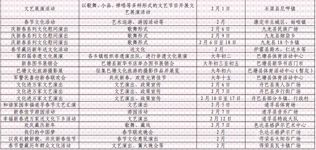 2019年春節(jié)藏歷新年期間“我們的中國(guó)夢(mèng)·文化進(jìn)萬(wàn)家”活動(dòng)安排