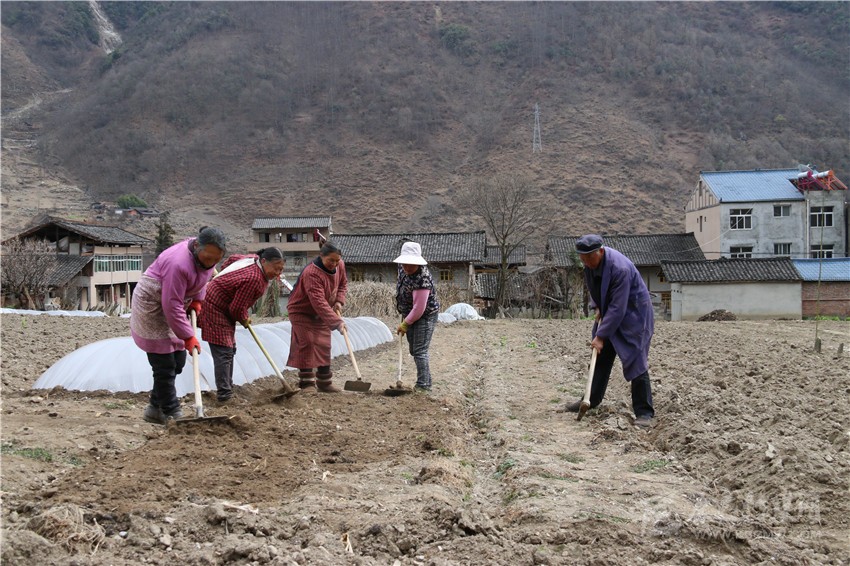 鄉(xiāng)城縣熱麥村群眾在為栽植的毛桃樹澆水。