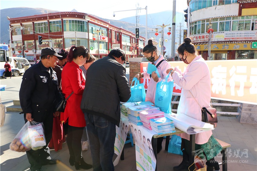 活動現(xiàn)場,工作人員以懸掛橫幅、大屏幕播放宣傳片、發(fā)放宣傳資料等方式,并通過藏漢雙語向群眾講解了結(jié)核病的危害、常見癥狀、傳播途徑、預(yù)防措施、治療周期以及國家對結(jié)核病患者的免費政策等,讓大家了解和掌握了結(jié)核病防治知識。