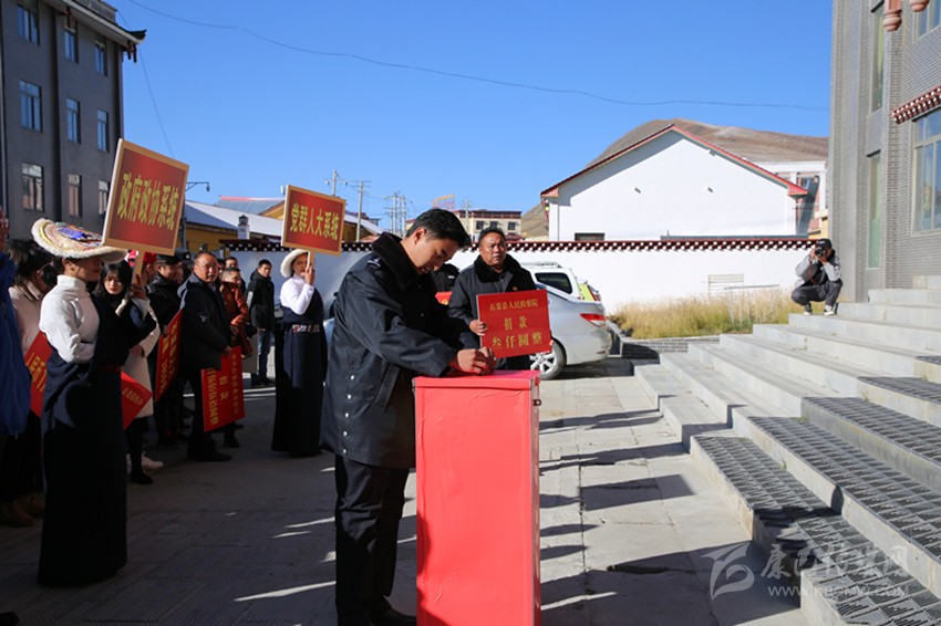 本網(wǎng)訊 “扶貧濟困、樂善好施、崇德向善,是中華民族的傳統(tǒng)美德,是構建和諧社會、建設‘生態(tài)文明和諧’新石渠的要求。我們呼吁全縣各機關、企事業(yè)單位、社會團體及社會各界人士主動伸出援手,積極參與此次活動,奉獻一份愛心,貢獻一份力量……”10月17日上午10點,隨著縣委副書記扎西曲珍宣讀倡議書的聲音,由石渠縣脫貧攻堅辦、縣工青婦、縣紅十字協(xié)會聯(lián)合舉辦的主題捐贈活動在縣委政府辦公區(qū)正式拉開帷幕,社會各界愛心人士排成長隊,依次將承載滿滿愛心的善款鄭重放入募捐箱內(nèi)。
