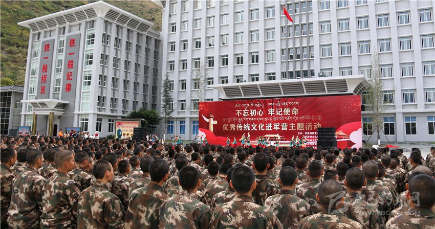 本網(wǎng)訊 11月9日下午,由州委宣傳部、州文化廣播電視和旅游局主辦,州文化館、州委黨史研究室、州圖書館承辦的“不忘初心、牢記使命”優(yōu)秀傳統(tǒng)文化進(jìn)軍營主題活動走進(jìn)武警甘孜支隊。州民族歌舞團(tuán)的歌手和演員們齊聚軍營,為官兵們送上了一場精彩絕倫的文化盛宴。