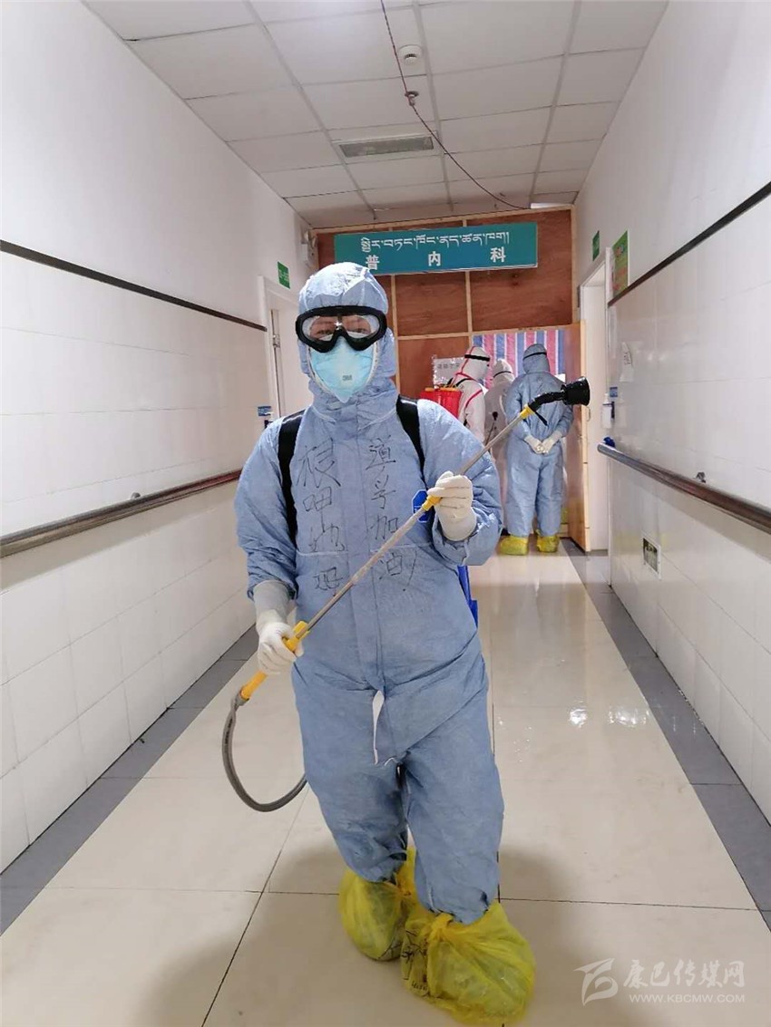 除了日常護(hù)理,根呷她姆的還要負(fù)責(zé)每日病房的消毒工作、垃圾清理以及清潔衛(wèi)生工作?!跋竟ぷ鞲裢庵匾仨氉龅讲宦┮粋€(gè)死角?!备人窂?qiáng)忍著84消毒液刺激引起的嗆咳及生活垃圾引起的惡心發(fā)嘔,一絲不茍,任勞任怨,做好每一天的消殺清潔工作,讓病毒無處遁形。在同事面前她是護(hù)士長、家長,在病人面前,她是護(hù)士、護(hù)工、清潔工、家屬、心理老師……根呷她姆每天在各種角色間轉(zhuǎn)換自如,不怕臟、不怕累、不怕苦,拼盡全力只為打贏這場沒用硝煙的戰(zhàn)爭!
