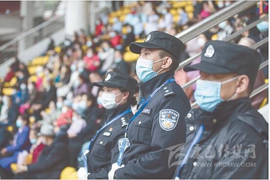 “請出示你的身份證,配戴好口罩?!薄按蟾缒阏义e方向了,你是往那邊走?!薄鞍荩愕奈恢檬峭筮呑摺!薄诒遍T體育場,民警除了安保執(zhí)勤以外,還幫助行動不方便的群眾找尋座位,或為咨詢的群眾答疑解惑。