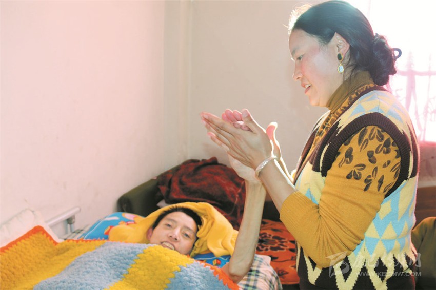 白天,白措總是笑嘻嘻的,她從不敢在丈夫面前流淚,怕他多想。在無數個夜里,她都是含淚度過的,但她也從未灰心,她相信只要自己精心照顧、細心陪伴、不離不棄他們一家一定能度過難關。在白措的精心照顧之下,根絨現在能坐上輪椅,一家人和睦共處,為身邊的家庭樹立了一個典型和模范。