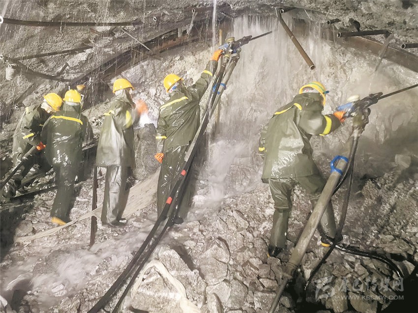 折多山隧道項目一線作業(yè)人員正在進行隧道開控工作。
