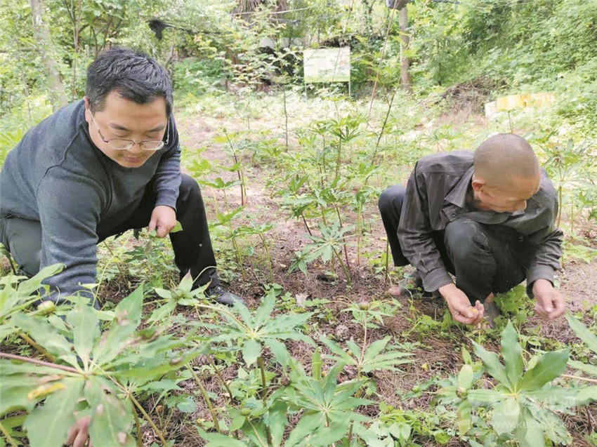 圖為金湯鎮(zhèn)高碉村第一書記王兆年幫助貧困戶為重樓地除雜草。