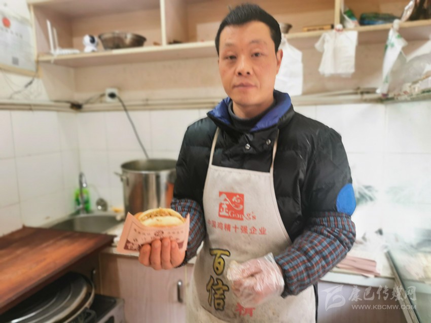 何小強(qiáng)展示做好的肉夾饃。