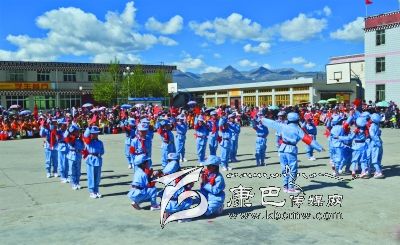 康定縣少先隊(duì)員代表藏區(qū)少先隊(duì)員參加央視“六一”晚會。