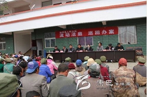 香格里拉人民法庭坐落于距“稻城亞丁國家級風景區(qū)”僅30公里的稻城縣香格里拉鎮(zhèn)。該法庭轄區(qū)為貢嶺、東義兩個片區(qū)以及香格里拉鎮(zhèn)的14個行政村、1個社區(qū)。轄區(qū)面積達4000余平方公里。轄區(qū)內(nèi)以山區(qū)為主,道路崎嶇、交通不便,海撥、地域跨度大,最大的落差近3000米,距轄區(qū)內(nèi)最遠的鄉(xiāng)鎮(zhèn)100公里。