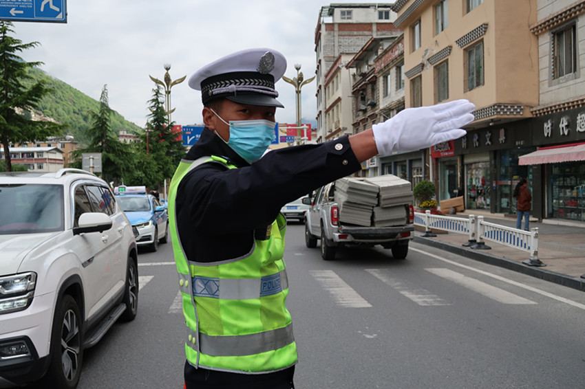 8時整,記者來到康定中學(xué)考點,看到執(zhí)勤交警已布置好警戒線、錐形桶、警示牌,有條不紊地指揮著交通,加大對考點周邊重要交通主干道等區(qū)域亂停亂放、亂鳴喇叭等交通違法行為的查處力度,為考生營造安靜的考試環(huán)境。同時,對“愛心送考”車輛給予優(yōu)先通行,確??忌鷾蕰r到達考場。